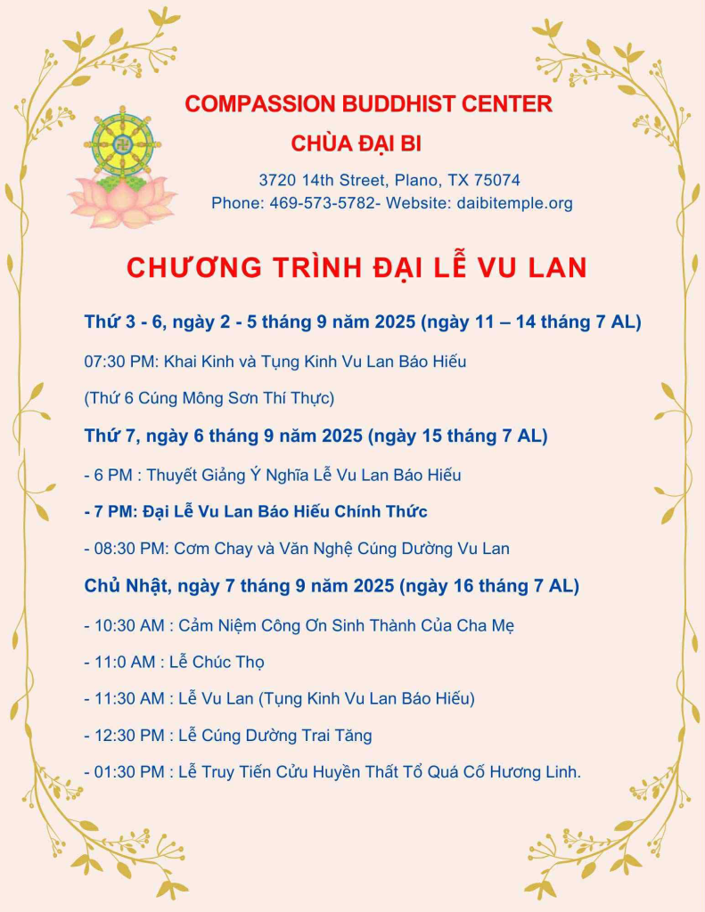 CHƯƠNG TRÌNH ĐẠI LỄ VU LAN ✨