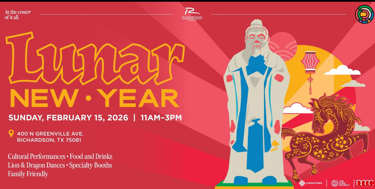 Trung Tâm Sinh Hoạt Cộng Đồng Người Hoa Dallas (Dallas Chinese Community Center) phối hợp cùng Thành phố Richardson và CORE District trân trọng kính mời cộng đồng đến tham dự Lễ Hội Tết Nguyên Đán Bính Ngọ 2026, một trong những sự kiện văn hóa đầu Xuân đặc sắc và được mong đợi nhất tại khu vực Bắc Texas.